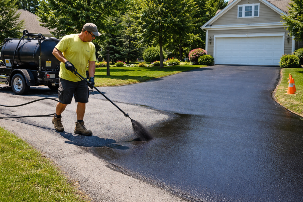 Professional sealcoating that shields driveways from weather damage, cracking, and surface wear while enhancing curb appeal.